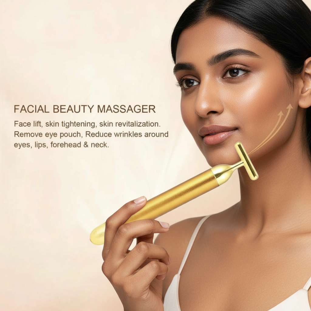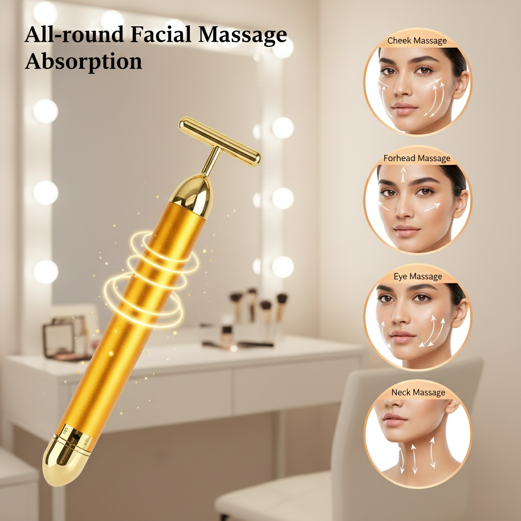 24K Gold Energy Beauty Bar Electric Facial Massage Roller