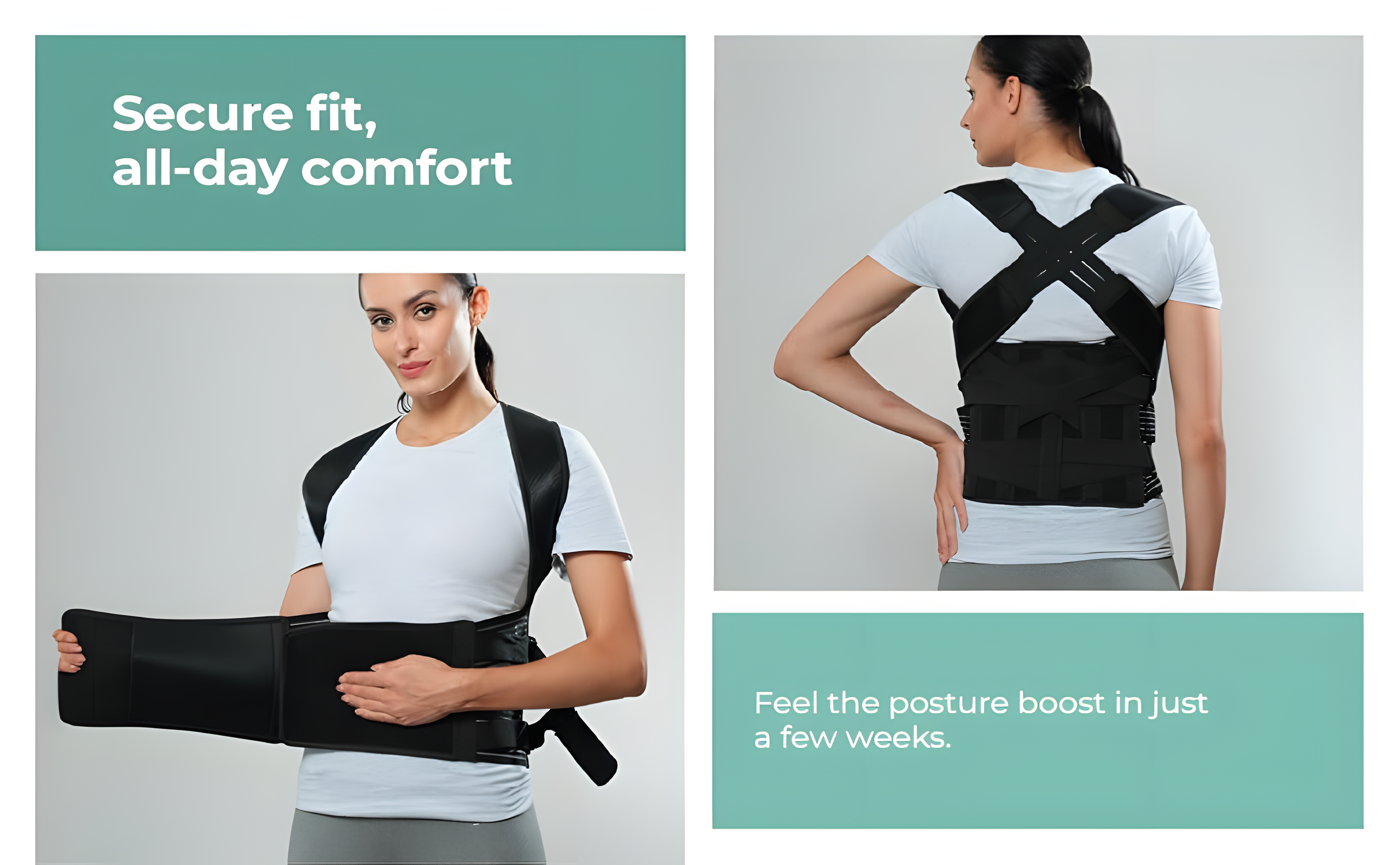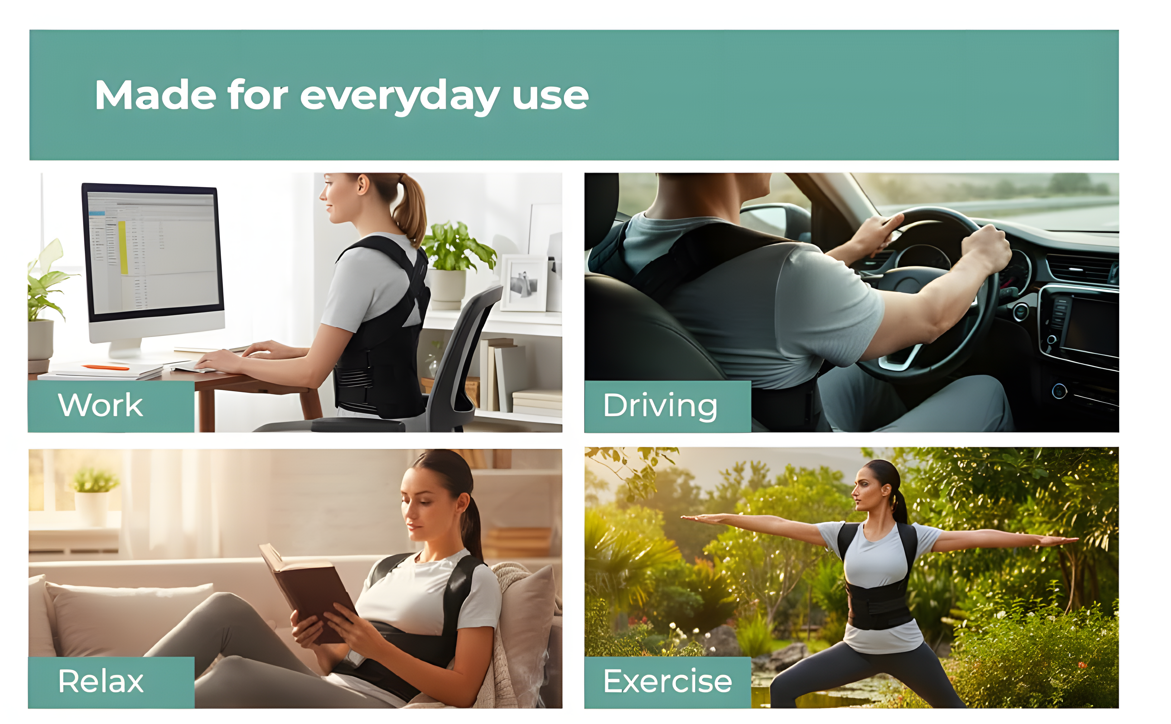 A: Yes! The Posture Corrector is made from lightweight, breathable neoprene and has a slim X-cross design, making it comfortable and discreet under shirts or workout wear. It’s perfect for office hours, home use, or even gym sessions.