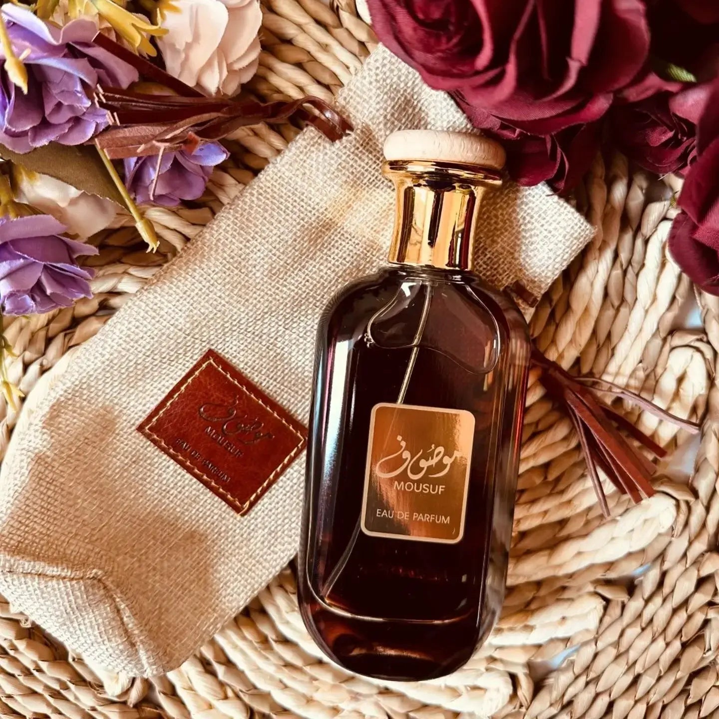 Mousuf’s amber bottle captures the warmth and depth of its scent, a reflection of refined sophistication and timeless grace